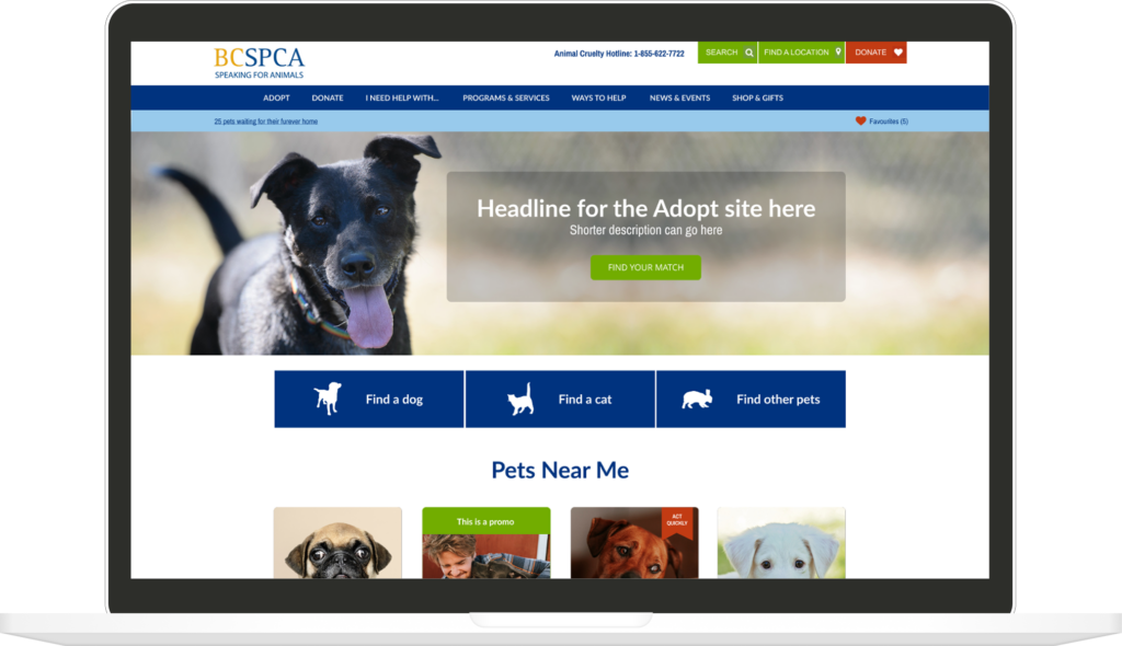 Puppies, old good doggos and kitty kats galore, the BC SPCA Adopt site was a pleasure to design