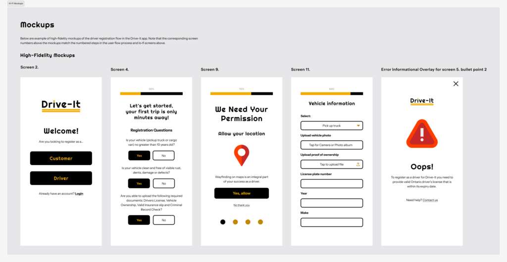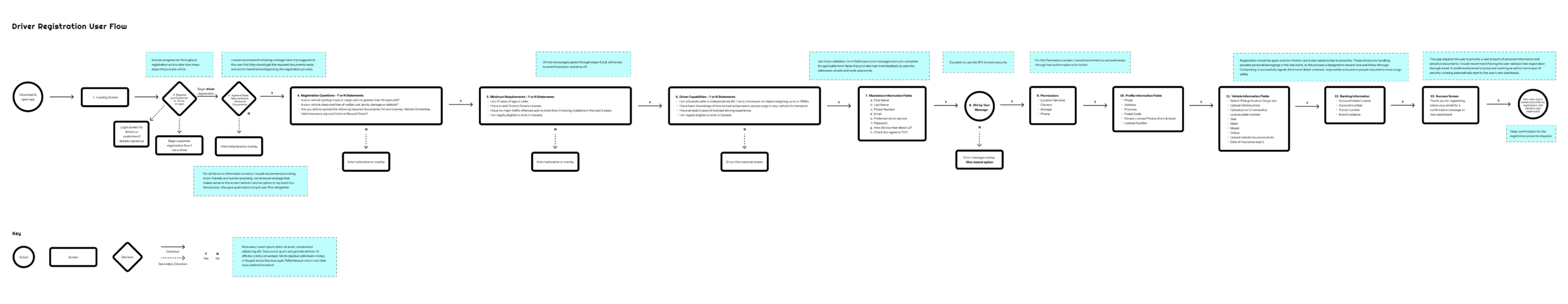This project focused on designing a smooth, easy-to-follow onboarding experience for a driver-based mobile app. The goal was to create a registration flow that feels clear from the first step through to completion, helping reduce confusion and drop-off along the way. I started by mapping the full user journey, thinking through each step a driver would take and where they might hesitate or need more guidance.